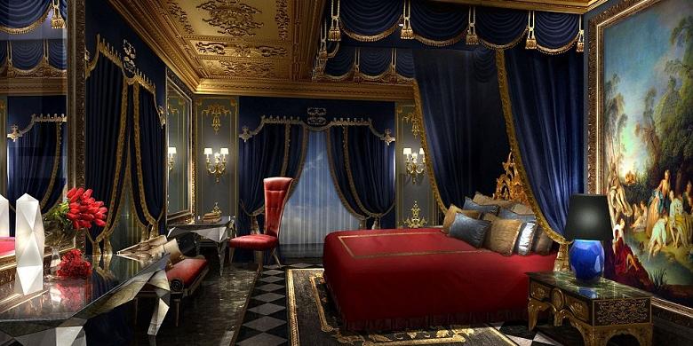 Louis XIII Holdings Ltd, pemilik hotel gaya Baroque ini, mengungkapkan namanya bersama dengan rilis rendering interior ruang entry-level dan satu kamar tidur Villa du Comte.